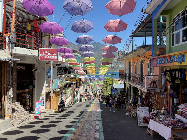今回は乗合いのボートに乗ってサン・フアン・ラ・ラグーナとサン・ペドロ・ラ・ラグーナという村に行ってみました。どちらも定期市の日ではなかったので静かな感じで、通りにカラフルな傘が吊されていたり、壁画が描かれていたり、写真映えする場所があちこちにあって驚きました。寒かったアンティグアよりも温かくて過ごしやすいパナハッチェル。この町の女性たちはとてもお茶目で、市場や屋台でのやり取りがとても楽しかったです☆