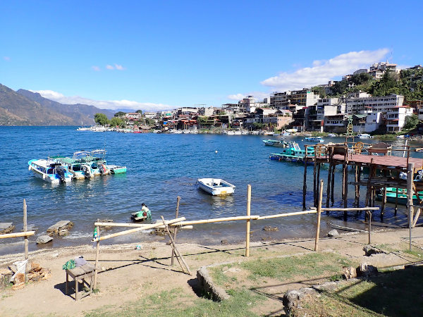 グアテマラの古都アンティグアからは、カミオネタ(通称チキンバス)と呼ばれる名物のカラフルなボンネットバスを3回乗り継いでパナハッチェルという町に移動しました。パナハッチェルは標高1560mに位置するアティトラン湖の湖畔の町で、対岸には3つの火山ががそびえ立っていて景色がとても美しいです。のんびりとしている町の中にはホテルやレストラン、土産物屋が立ち並んでいて、湖の周辺に点在している先住民の村を訪れる拠点となっています。