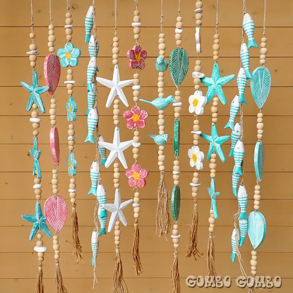 インドネシアのバリ島で見つけた、ナチュラルな雰囲気が素敵な木彫りのオーナメント♪ ハンドメイドで作られた魚や鳥、木の葉、プルメリア、ヒトデのデザインが素朴でとても可愛いです。夏らしい涼しげなオーナメント、インテリアのアクセントにお勧めです☆