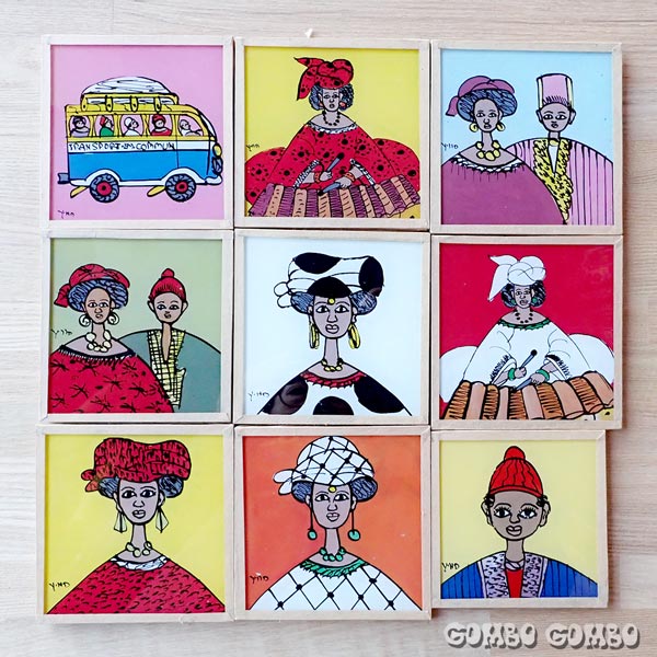 セネガル人のアーティストが描いている伝統的なガラス絵、スウェール♪ モチーフは人物や人々の日常の風景など様々で、ガラスの裏側から絵を描き色を着ける技法が使われています。西アフリカの人々の雰囲気が伝わってくるような、カラフルでお洒落なガラス絵は、アフリカらしいインパクトのある絵と色味がとても素敵です。違うタイプのガラス絵もありますよ☆