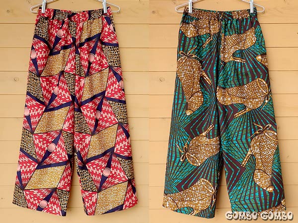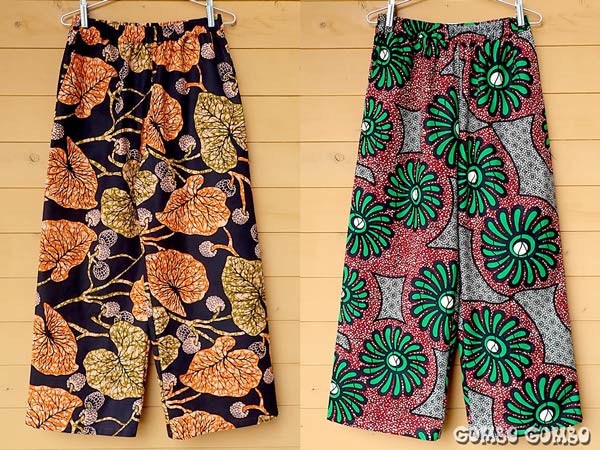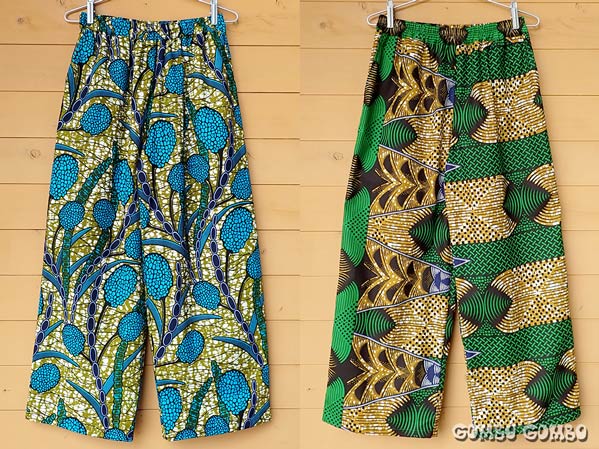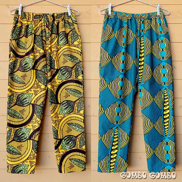 カラフルな西アフリカの布、パーニュを使って作っているテーパードパンツの新作が続々と出来上がっています♪ このパンツは股上は深めで、ヒップ周りにゆとりがあって履き心地抜群!ももから裾に向かって細くなっているデザインなので、足を細くきれいに見せてくれます。素材はコットン100%でウエストはゴム、両サイドにポケット付き。ストレートタイプもありますよ☆