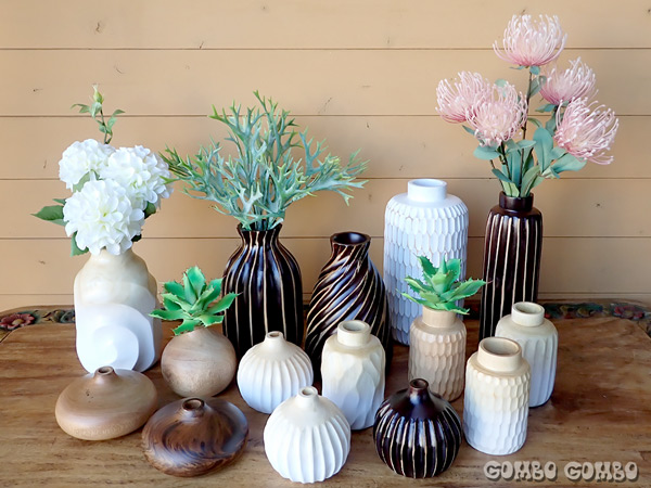 マンゴーの木を使って作られているお洒落なタイ製のフラワーベース♪ 天然素材ならではの温かみのある素材感と、安定感のある丸っこいフォルムがとても可愛らしいです。サイズや形も様々で、色々な場所に合わせて選ぶことができます。防水ではないのでドライフラワーや造花などを飾ってお楽しみ下さい☆