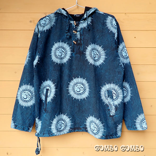ストーンウォッシュ加工の落ち着いた色合いがお洒落な、ネパール製プルオーバージャケット♪ 裏地にはフリースが付いているのでとても暖かく、これからの季節に大活躍するジャケットです。メンズ、レディースともにご愛用いただけます!! 他にも前開きジッパータイプの色柄違いもありますよ☆