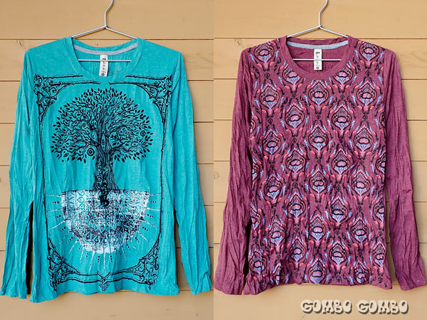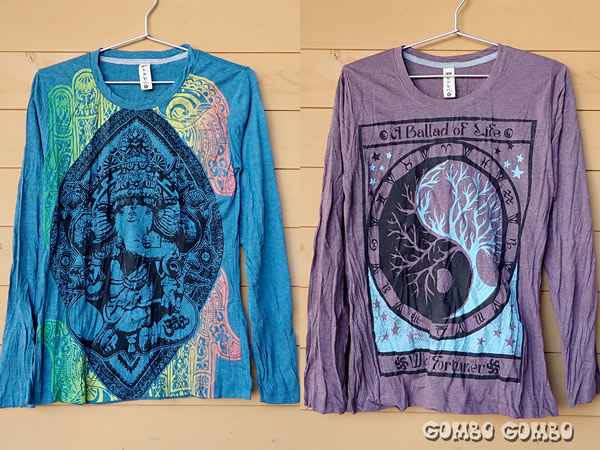 キノコやエスニック感満載の個性的なプリント柄が格好良いネパール製Tシャツ♪ 肌触りの良いコットン素材で、ストーンウォッシュ加工の落ち着いた色味がとてもお洒落な秋色Tシャツです。サイズは男女兼用でS・M・L・XL、色柄違いもありますよ☆