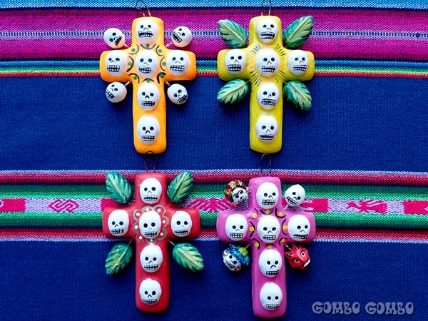 カラフルでかわいいメキシコ製の壁飾り♪ 石膏で作られた立体的な壁飾りは、十字架やサボテン、人魚、コラソン(ハート)とガイコツ人形などが組み合わさったメキシコらしい面白いデザインで、お部屋に飾ると明るい雰囲気になりますよ☆