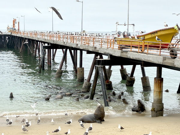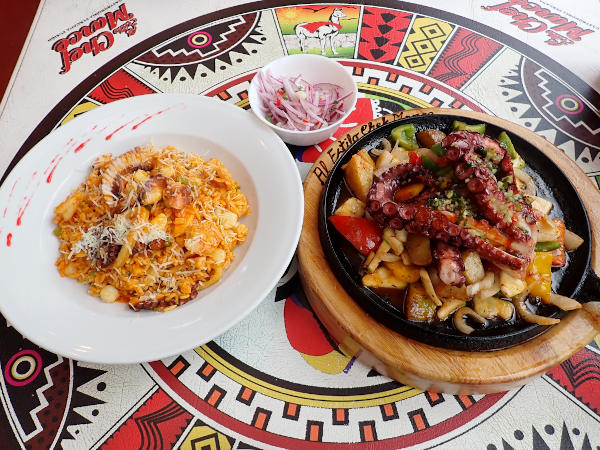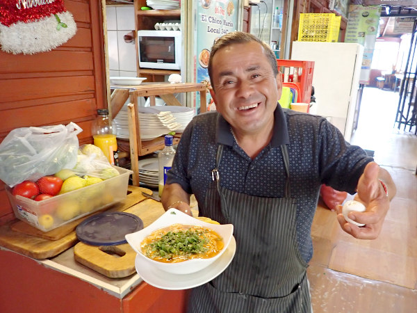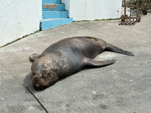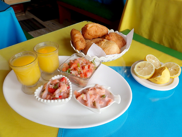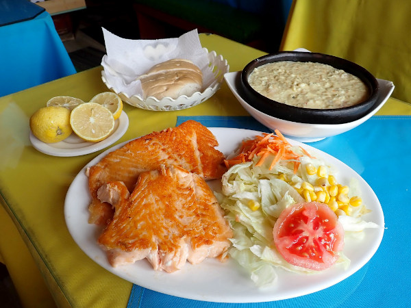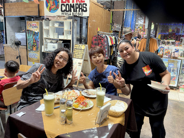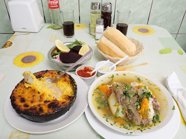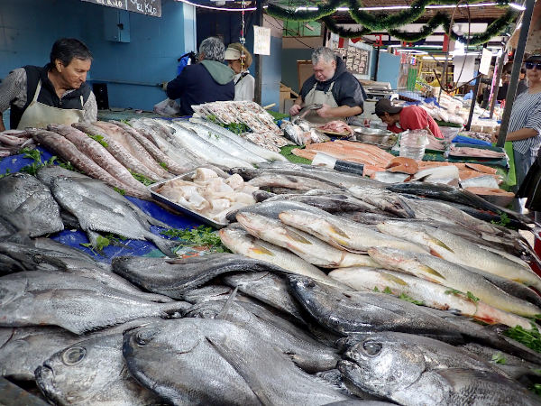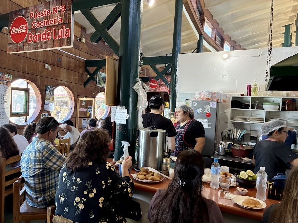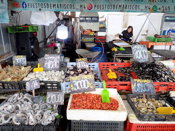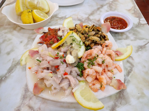 翌日のクリスマスは祝日でお店が開いているか心配でしたがアンヘルモ市場のお店が少し開いていて、海沿いのセビッチェ屋さんの近くに大きなアシカがいてビックリ!! 魚屋さん達が生ゴミを捨てている大きなゴミ箱の上にも1頭が気持ちよさそうに寝ていたり、海を泳いでいたり。市場では「ウニが食べられるよ!」と声を掛けてきた男性の店で、サーモンとチュペという濃厚なシチューを食べてみました。