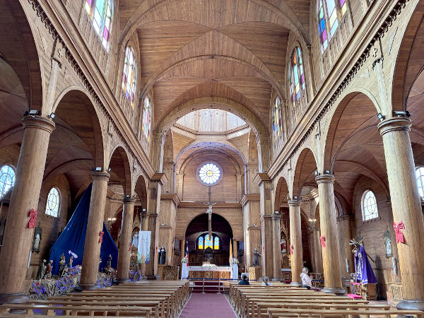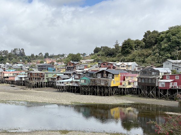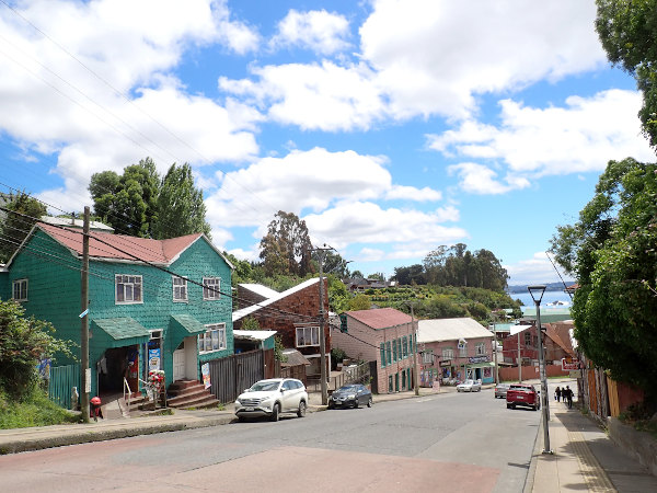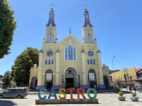 予約していた宿が名物の水上家屋、パラフィトス・デ・ガンボアにあったのでバスターミナルから歩いて向かったら、転げ落ちそうな急坂の下にあって思わず笑ってしまいました。チロエ島の見所は世界遺産に登録されている16の木造教会で、カストロの中央広場に面して立つサン・フランシスコ教会もその一つ。この島で最も人口が多いカストロのメインストリートは地元の人々で賑わっていて、アイスを食べながら歩いている人が沢山いました。
