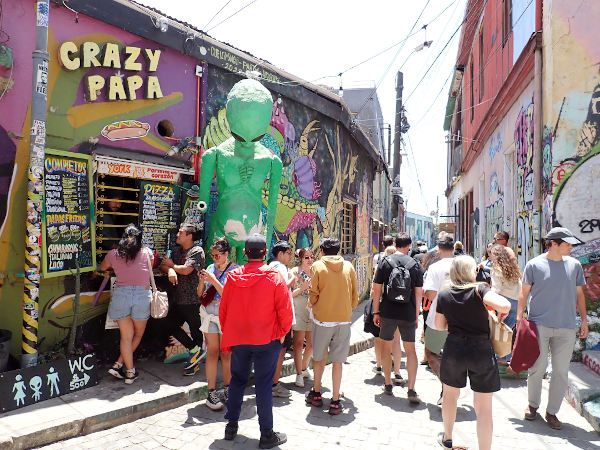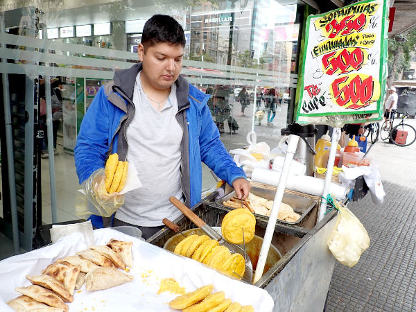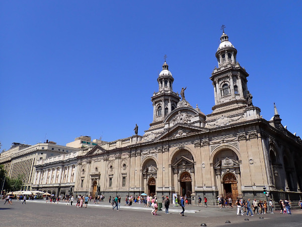 カラフルな壁画を楽しんだ港町バルパライソの後は、今回の南米最後の目的地サンティアゴに移動しました。バルパライソは毎日午前中に小雨が降って肌寒かったのですが、バスに約2時間乗って到着したサンティアゴは天気が良いし暑くてまるで別世界!! 滞在していた旧市街のセントロには歴史的な建物が立ち並んでいて、遊歩道に露天商がいたり軽食屋さんがいたりと庶民的な感じがする街でした。地元の人で賑わっている食堂もあって色々なチリ料理を食べることが出来ました♪