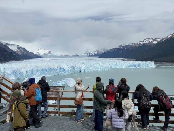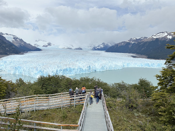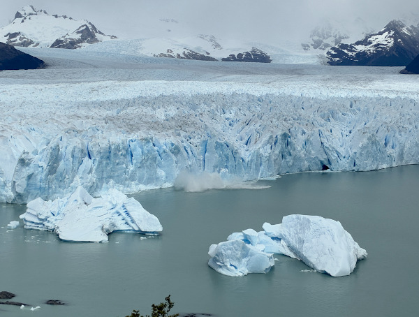 トレッキングを楽しんだエル・チャルテンからは、バスでエル・カラファテという町に移動して翌日は楽しみにしていたペリト・モレの氷河に行って来ました♪ 町から氷河まではバスで約1時間半。遊歩道にある展望台からは全長約35km、先端部の幅約5km、高さ約60mという巨大な氷河を間近に見ることが出来て迫力満点!! 天気は曇っていたけど、氷河の先端が何度もゴォォォという轟音をたてて崩落していて、どれだけ見ていても飽きない絶景でした。