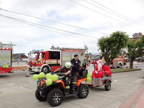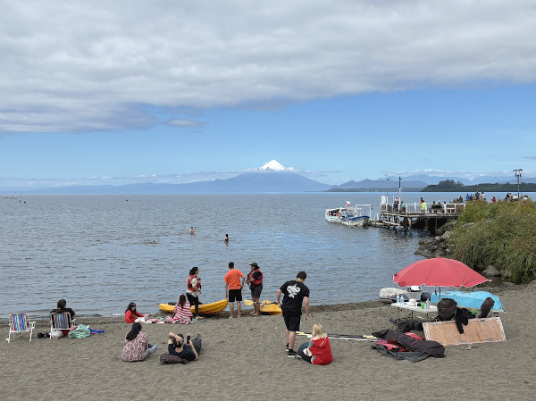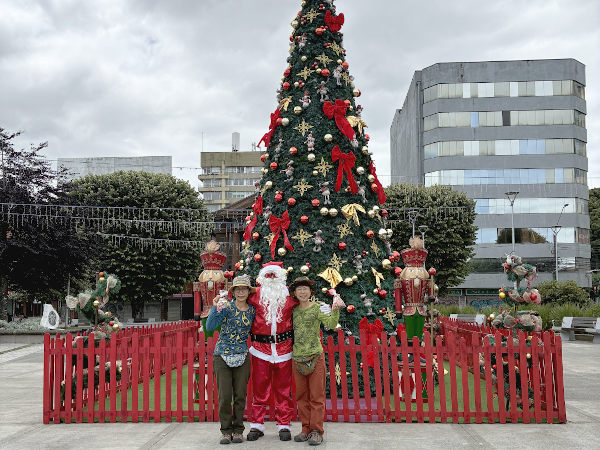 そして町の中心へ行ってみると、サンタの格好をした消防士さんからお菓子セットのプレゼントをもらえて2人で大喜び♪ 午後はバスで20分位で行けるリゾート地のプエルト・バラスでジャンキウエ湖越しに見える富士山みたいなオソルノ山(標高約2,660m)を眺めながらアイスを食べて、とても良いクリスマスになりました☆