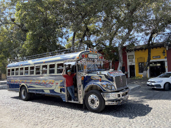 グアテマラの古都アンティグアからは、カミオネタ(通称チキンバス)と呼ばれる名物のカラフルなボンネットバスを3回乗り継いでパナハッチェルという町に移動しました。パナハッチェルは標高1560mに位置するアティトラン湖の湖畔の町で、対岸には3つの火山ががそびえ立っていて景色がとても美しいです。のんびりとしている町の中にはホテルやレストラン、土産物屋が立ち並んでいて、湖の周辺に点在している先住民の村を訪れる拠点となっています。